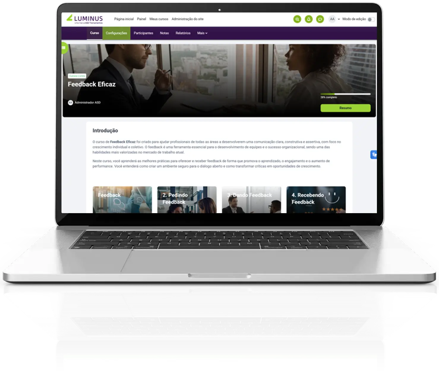 Possibilidade de realizar avaliações online, fornecer feedback aos usuários e gerar relatórios.